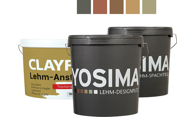 YOSIMA ist repräsentative Innenraumgestaltung mit ausgesuchten Tonerden. Für die ganz persönliche Traum-Oberfläche steht eine Vielfalt von 146 sorgsam komponierten Farbtönen zu Verfügung