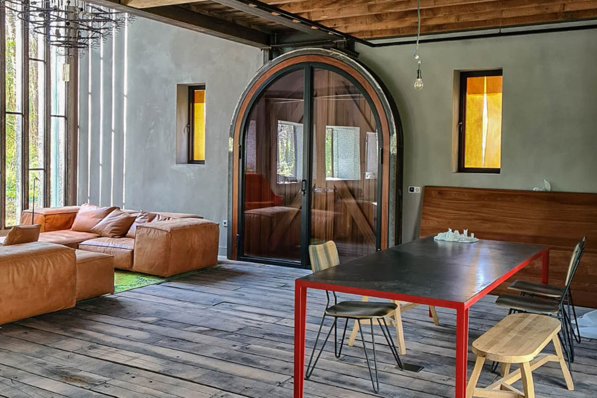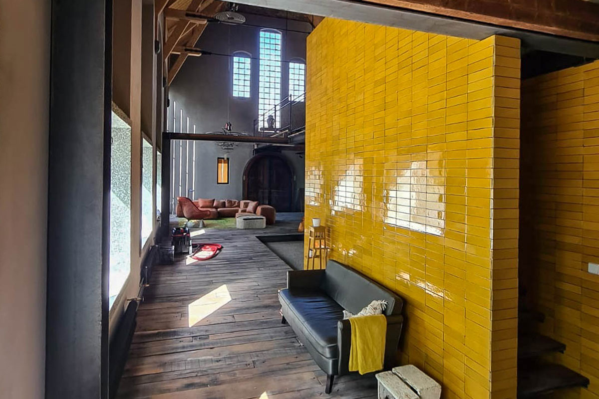 2015 kam es zu einem erneuten Wechsel der Betreiber wodurch die Immobilie erstmals in privaten Besitz gelang. Somit konnte das mittlerweile unter Denkmalschutz stehende Haus erstmalig zu wohnzwecken genutzt werden. Mit viel Gespür für den historischen Erhalt des Gebäudes, gelang es den Architekten, Handwerkern und Bauherren, dass ehemalige Kirchengebäude umfangreich zu modernisieren. Die Fassade sollte mit einer dampfdiffusionsoffenen Farbe gestrichen werden und bekam neue Fenster und Türen. Da eine Aussendämmung die äußere Gestalt des Denkmals zu stark verändern würde und eine Innendämmung, bei der Stärke der Wände, zu einem möglichen Feuchtigkeitsproblem führen könnte, entschied sich Architekt Paul de Reuver (Architekturbüro Elan) für die feuchteregulierenden Eigenschaften von Lehm. Unser niederländischer Handwerkspartner Peter van Hemert überarbeitete, mit seinem seinem Handwerksunternehmen ECOWONEN, die massiven Bestandswände großflächig mit einer 1-2cm dicken Schicht CLAYTEC Lehm-Unterputz mit Stroh. Verfeinert wurde die Oberfläche mit dem YOSIMA Lehm-Designputz (Farbton SC 1) , welcher in zwei Lagen auf den Unterputz aufgetragen wurde.