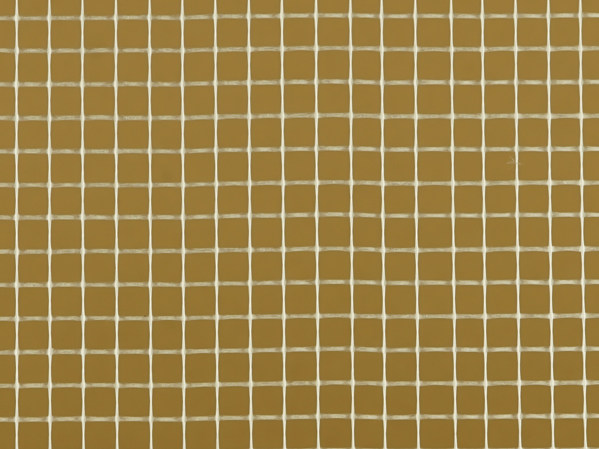 Drehergewebe aus Glasseidengarn/Roving, appretiert mit Polymerausrüstung für Gittergewebe. Gewicht ca. 65g/m2, Kette/Schuß ca. 16/16 Fa pro 10 cm, lichte Maschenweite ca. 5,5 x 5,5 mm.