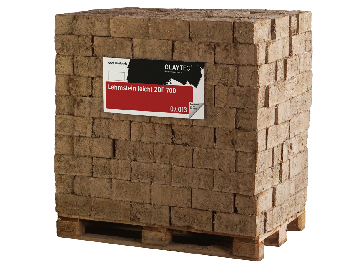 Besonders leichter Lehmstein der Anwendungsklasse II (= für Innenmauerwerk) mit wärmedämmender Wirkung. Der Lehmstein 700 2DF ermöglicht die moderate Innendämmung von Fachwerkhäusern und allen anderen Altbauten in üblicher Mauerwerkstechnik. Als Mörtel ist Lehm-Mauermörtel leicht geeignet.