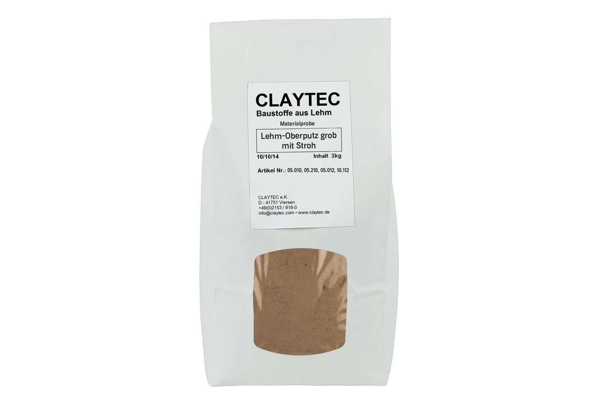 Materialprobe Lehm-Oberputz grob mit Stroh (Art.-Nr. 05.010, 05.012, 10.112)