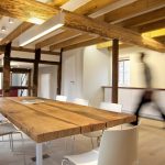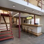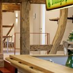 Viele Gebäudeteile waren von Verfall bedroht und sanierungsbedürftig.  Schon während der ersten Besichtigung sprang der Funke beim Bauherrn über, seine Leidenschaft zu historischen Gebäuden wurde entfacht. Die denkmalgerechte Sanierung erfolgte in enger Absprache und Zusammenarbeit zwischen FRANKE Architektur | Innenarchitektur, der Gemeinde Kreuzau und dem Rheinischen Amt für Denkmalpflege. Städtebauliche, denkmalpflegerische und gestalterische Aspekte fanden Berücksichtigung, und auch den Themen Energieeffizienz und nachhaltiges Bauen wurde Rechnung getragen. Die Lehmgefache wurden in traditioneller Lehm-Bauweise erneuert, mit Lehmbausteinen und Lehmmauermörtel von CLAYTEC ausgemauert. Als Reminiszenz an die ehemalige Nutzung als Dorfkneipe wurde für Besprechungen im Ausstellungs-Galeriebereich eine Theke mit Bierwerbung als Teeküche entworfen und installiert.