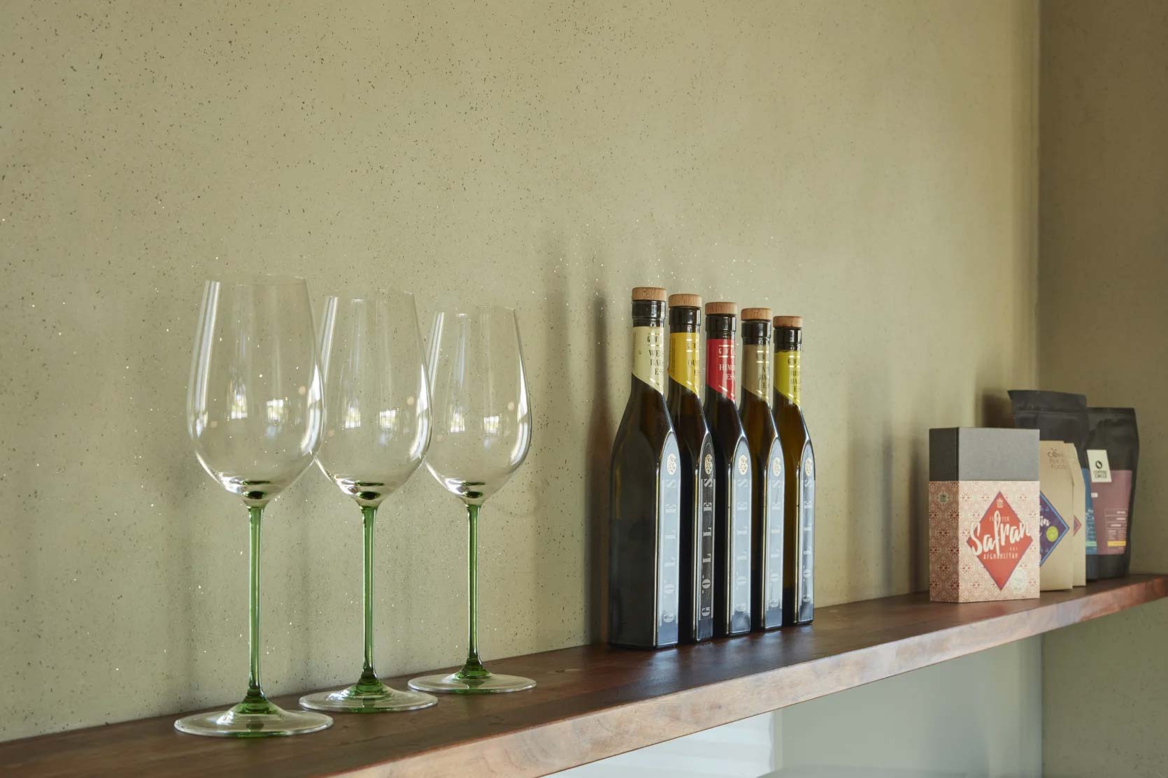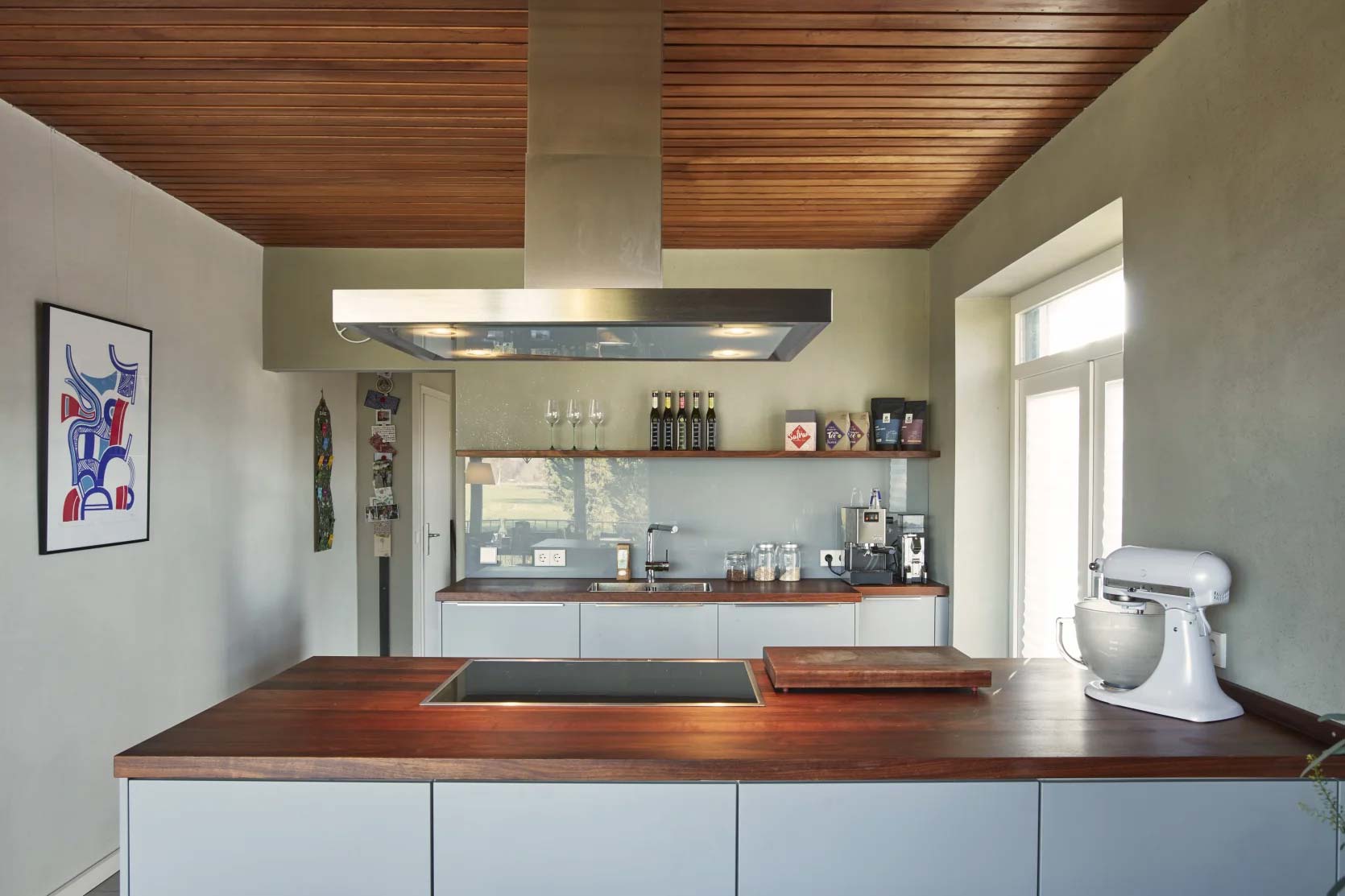 Im Jahre 2015 wurde das Obergeschoss des Gebäudes modernisiert. Es wurde eine mineralische Innendämmung mit CLAYTEC Lehmkleber eingebaut sowie alle Wandoberflächen mit YOSIMA-Designputzen veredelt. Die Holzdecken und Fliesenböden der Bauzeit wurden, ebenso wie die Raumaufteilung und die meisten Holzfenster erhalten.