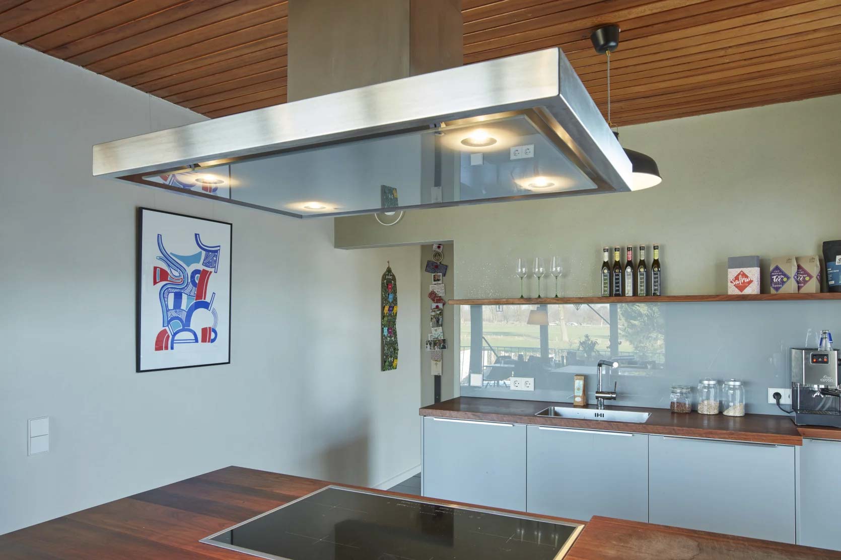 Das Grundstück geht rückwärtig in eine regionaltypische offene Bruchlandschaft über, was besondere Beachtung verdient, da der Gedanke der ineinander fließenden Verbindung von Natur und Bauwerk, ein oft postuliertes Ansinnen der architektonischen Moderne, in die Gestaltung des Hauses eingeflossen ist.